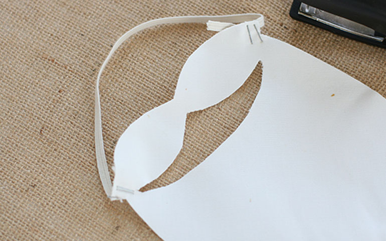 1º Dibujar y recortar la forma de la barba en el trozo de tela. Recordad que hay que dejar un hueco para la boca, entre el bigote y la barba.