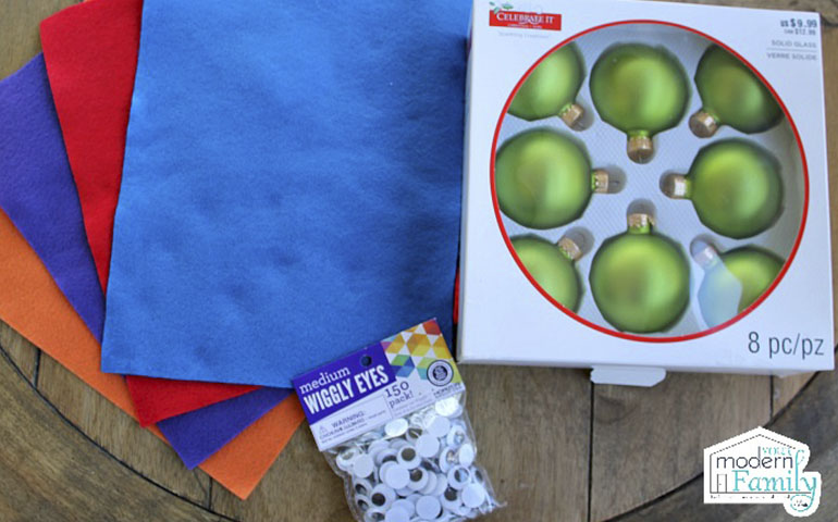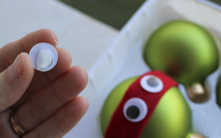 5º Añadimos una gotita de pegamento en los ojos saltones y los pegamos en el fieltro.