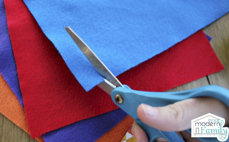 - Fieltro de los colores de los personajes (naranja, morado, rojo y azul)