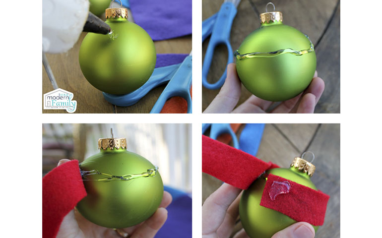 2º Cogeremos 4 bolas de navidad y le añadiremos una capa de pegamento en circulo.