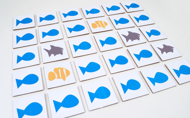 El juego es muy sencillo. Consiste en encontrar la pareja de pez payaso... pero sin despertar al tiburón, que se comerá tu turno. De ahí el nombre que le ha puesto su cradora y que nos encanta: "No despiertes al tiburón".