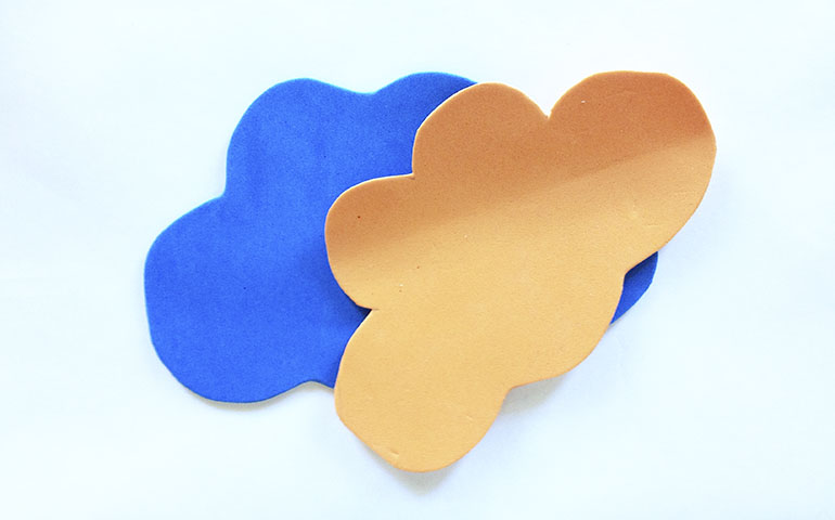 4º Ahora haremos la base para nuestro portalapices. Cortaremos la goma eva de la forma que más nos guste. Nosotros hemos cogido dos colores.