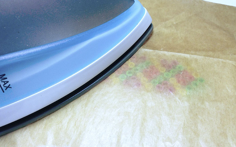 Lo cubrimos con el papel para horno y lo planchamos hasta que las cuentas se queden pegadas entre si.
